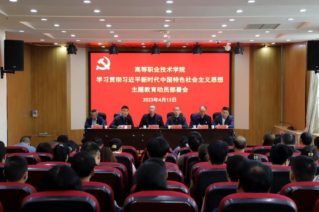 4月13日,高等职业技术学院学习贯彻习近平新时代中国特色社会主义思想主题教育工作部署会在综合楼4楼报告厅召开。学院全体班子成员、全体科级干部、部分教工学生党员代表参加会议。会议由申长奎主持,院长乐玉忠作了动员讲话。