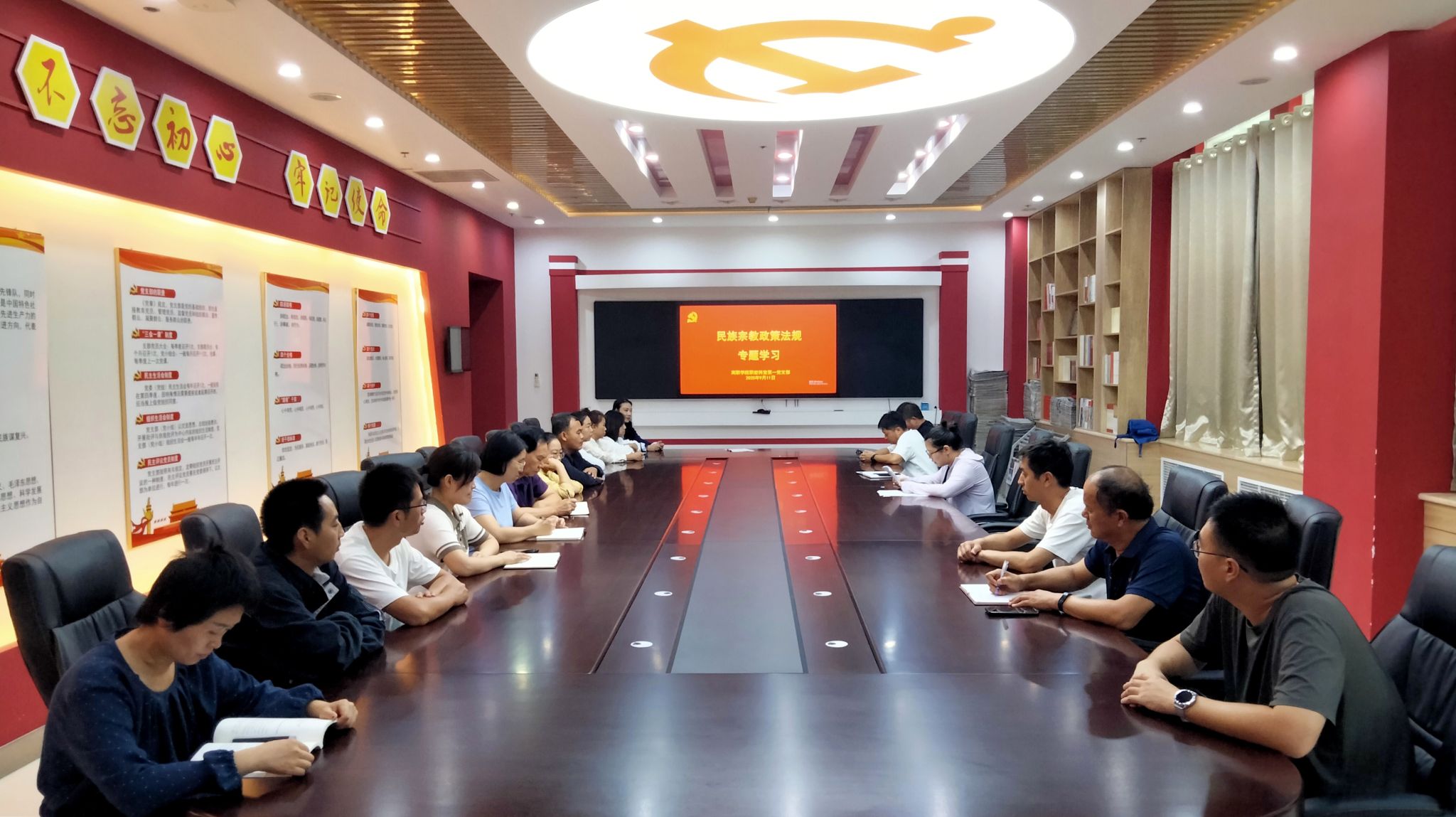 为深入学习贯彻习近平总书记关于加强和改进民族工作的重要思想及新时代党的宗教工作理论和方针政策,持续强化教职工民族团结意识,切实树牢意识形态阵地意识,9月11日下午,高等职业技术学院以党支部为单位组织广大教职工开展民族宗教政策法规专题学习。