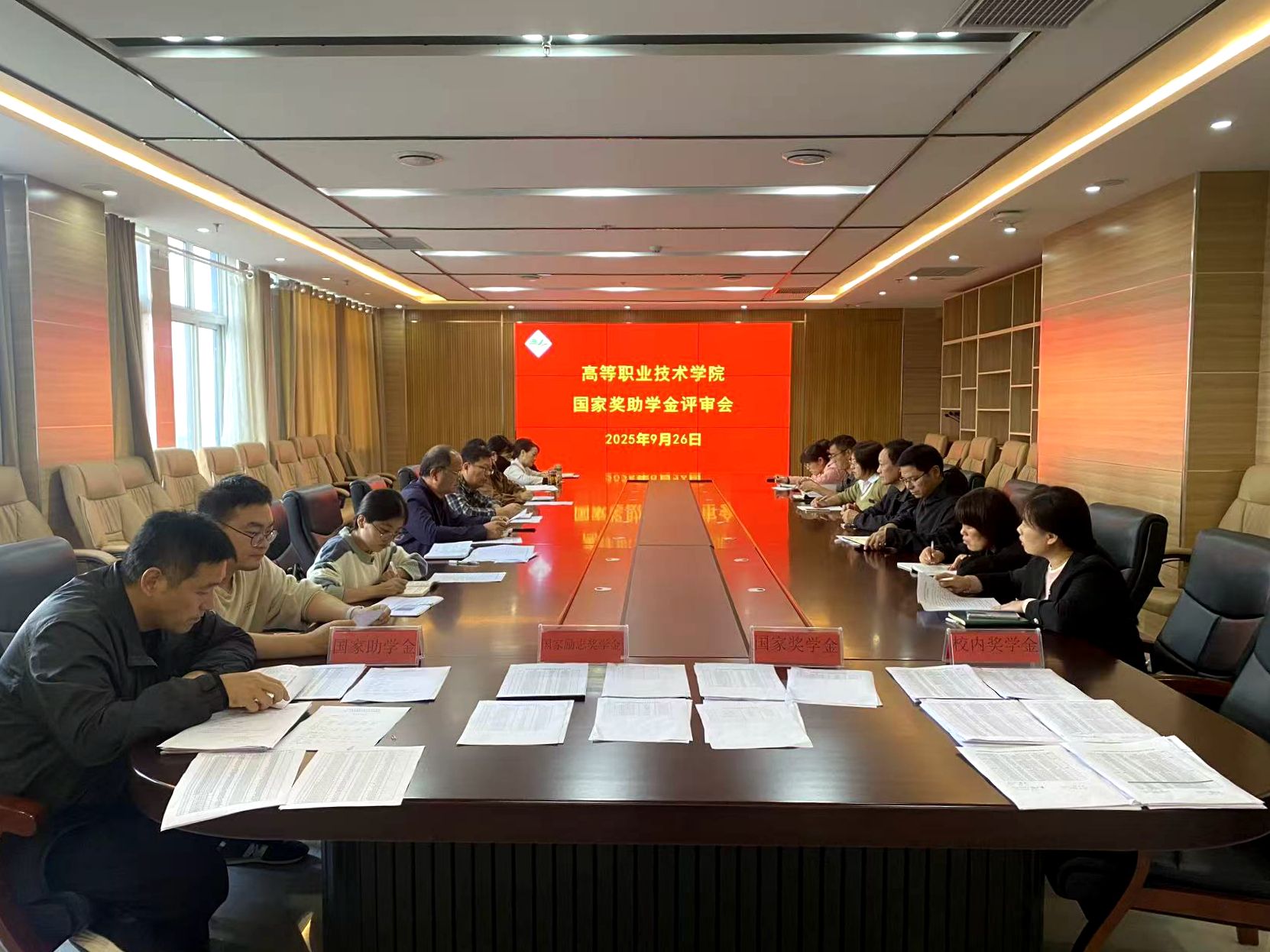 9月26日,高等职业技术学院在综合楼十楼第一会议室召开2025年国家奖助学金评审会。学院党委副书记张高峰出席会议,学生科、教务科、财务科等相关科室负责人,各系党支部书记、主任和负责资助的辅导员参加了评审会。会议由学生科科长丁文玉主持。