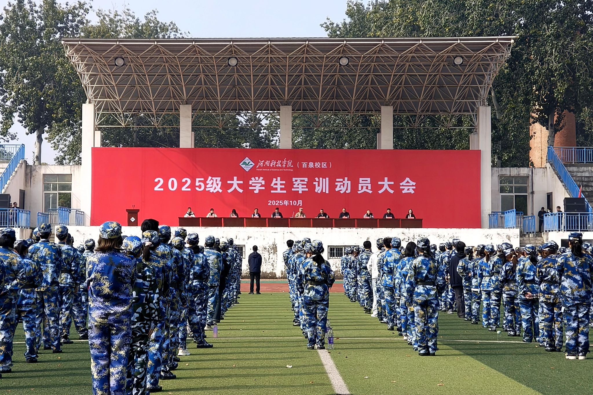 10月27日,河南科技学院百泉校区2025级大学生军训动员大会在田径场举行。学院领导班子成员、帮训部队带队领导出席,高等职业技术学院相关职能科室负责人、各系支部书记、各系军训指导员、军训教官、2025级全体新生参加。动员大会由副院长王铁固主持。