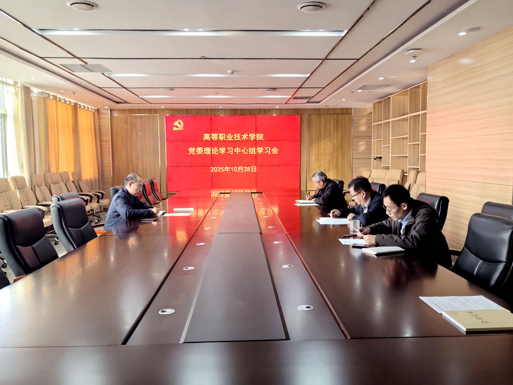 10月28日下午,高等职业技术学院党委理论学习中心组在综合楼十楼第一会议室举行民族宗教工作专题学习会。学院党委书记孙敬坤主持会议。