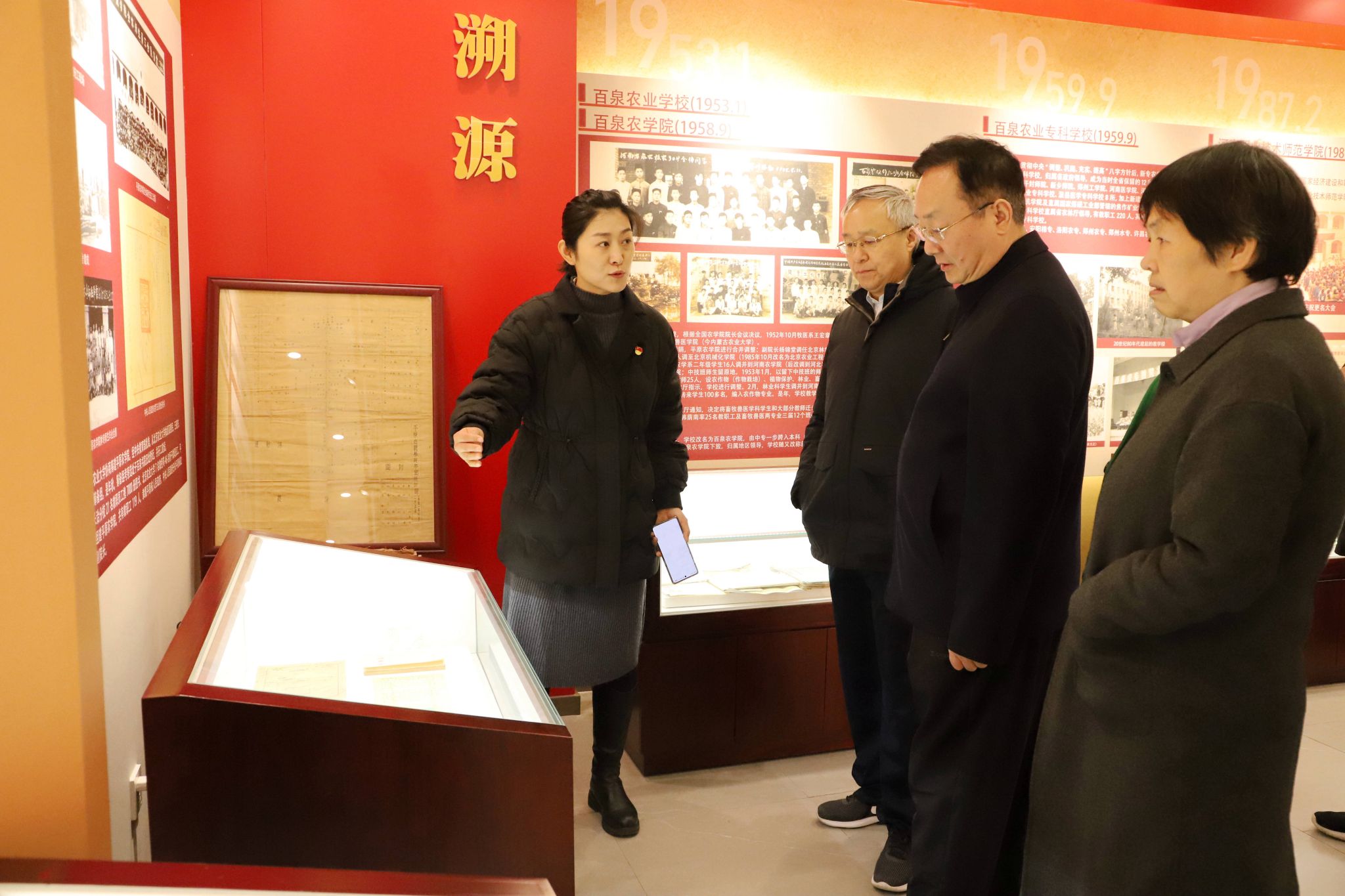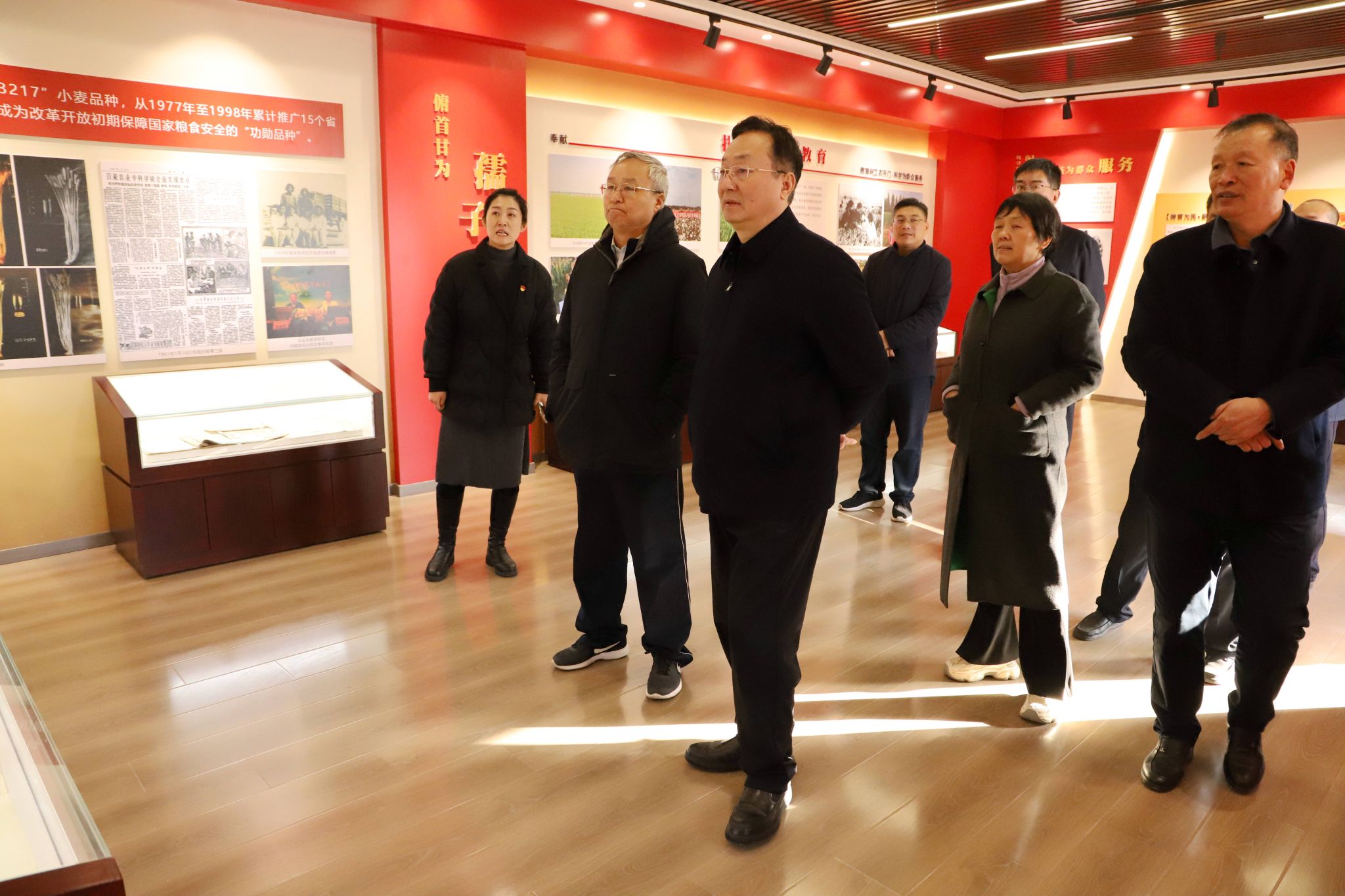 王文鹏先后参观了百农精神传承馆、志气楼、校友之家、黄光正工作室、黄光正旧居、志气田等场所,迈步于熟悉的校园,他不禁回忆起在母校求学、工作时的点滴,一草一木、一砖一瓦,都承载着最珍贵的记忆。在新落成的百农精神传承馆,王文鹏重温了学校筚路蓝缕、砥砺前行的发展历程,对母校凝练弘扬的百农精神及百农精神传承馆的建设给予了高度评价,欣然写下“传承红色基因 弘扬百农精神”,祝福母校再谱华章、再创辉煌,争取早日实现农科特色鲜明的区域高水平大学的奋斗目标。