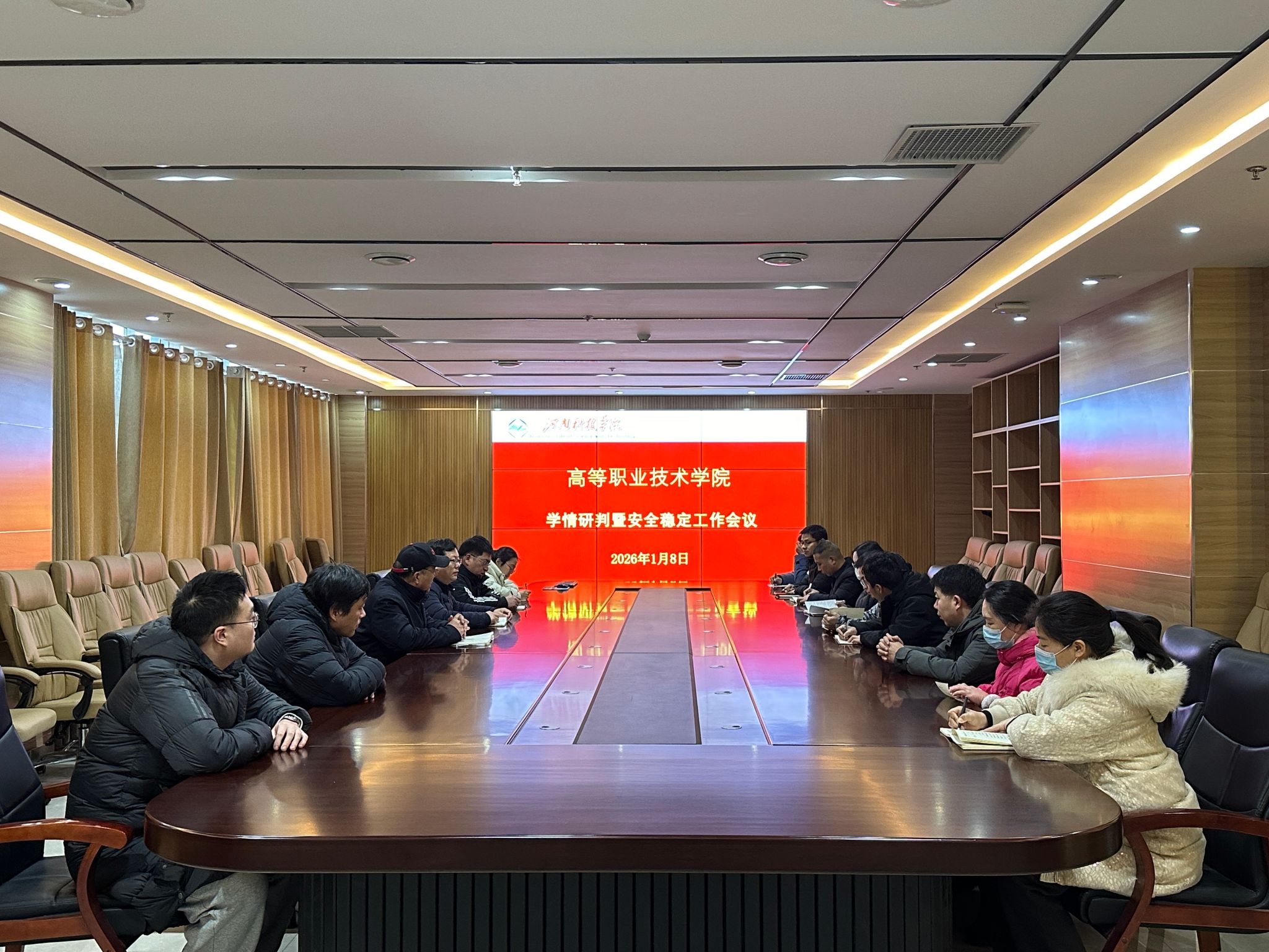 为筑牢学生安全稳定防线,1月8日上午,高等职业技术学院在综合楼十楼会议室召开学情研判暨安全稳定工作会议。学院党委副书记张高峰、各系党支部书记、辅导员及团委、学生科全体人员参加会议。