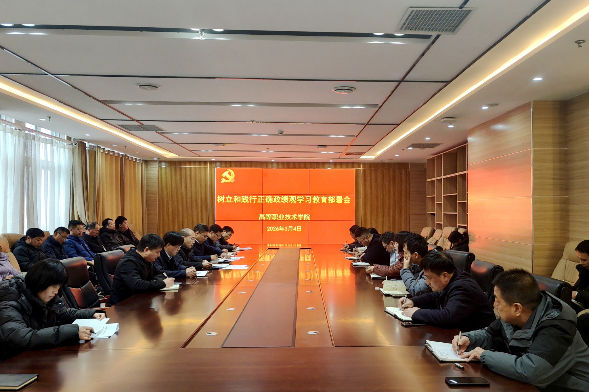 3月4日上午,高等职业技术学院在综合楼十楼第一会议室召开树立和践行正确政绩观学习教育部署会,学院领导班子成员、各部门负责人及各党支部书记参加会议。会议由学院院长李勇超主持。