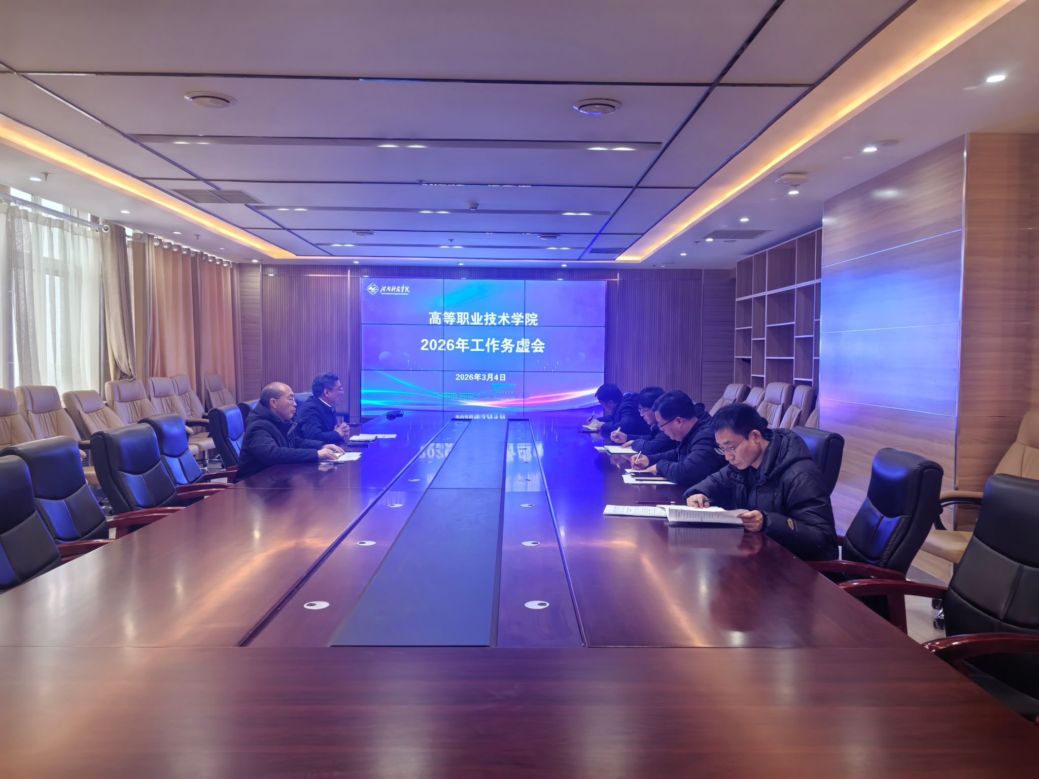 3月4日上午,高等职业技术学院在综合楼十楼第一会议室召开2026年工作务虚会。学院全体班子成员参加会议,会议由院长李勇超主持。