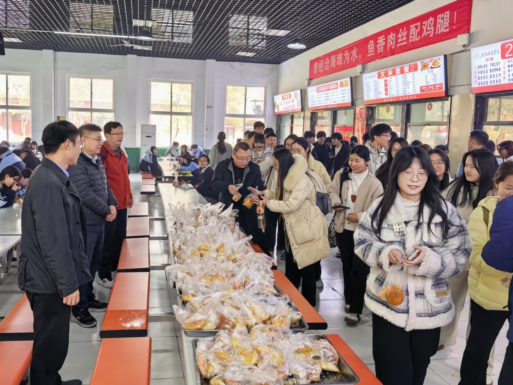 3月20日中午,我院餐厅开展向师生赠送年糕、菜角等活动。院领导李勇超、张高峰、张兆沛出席活动。