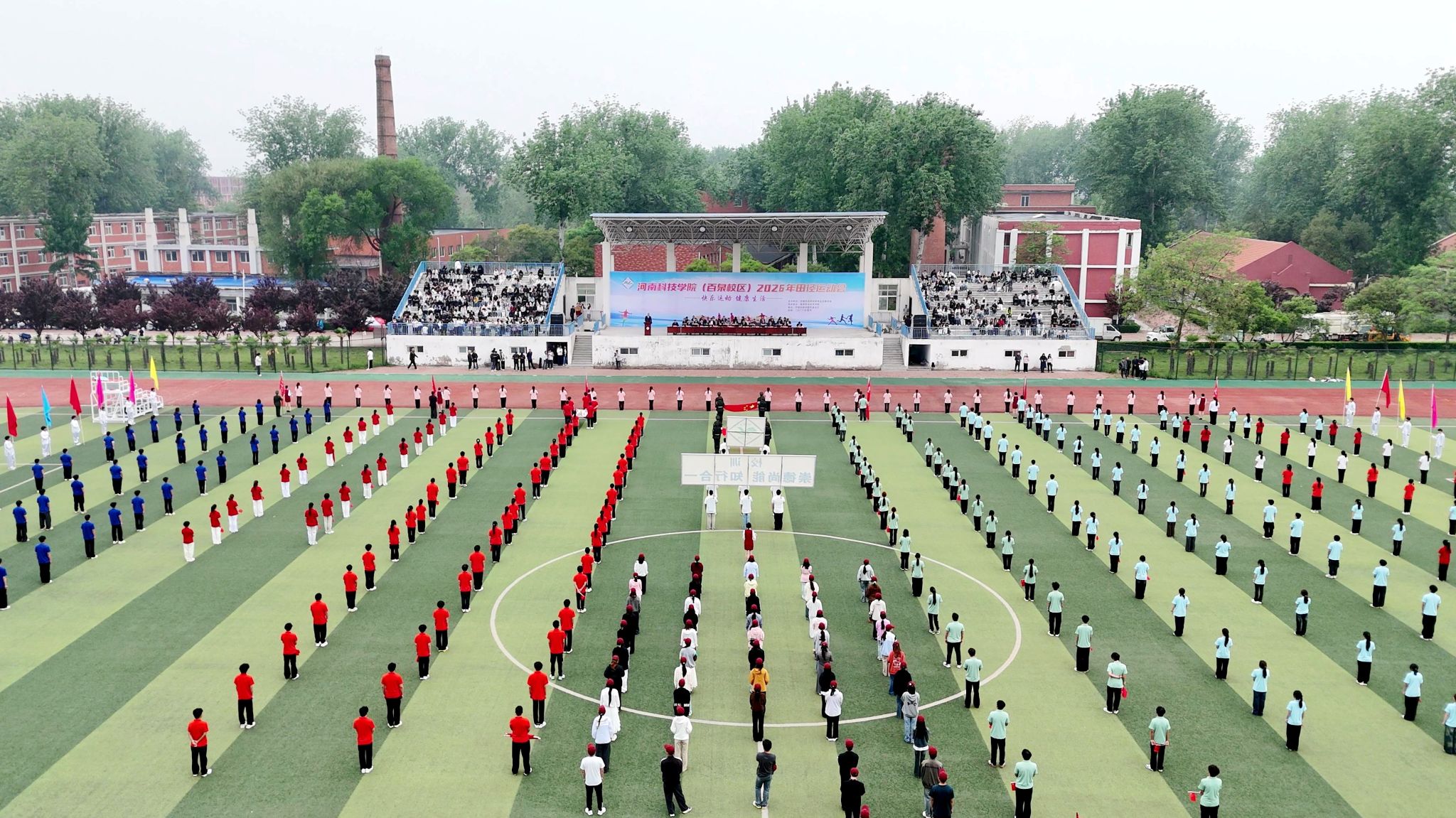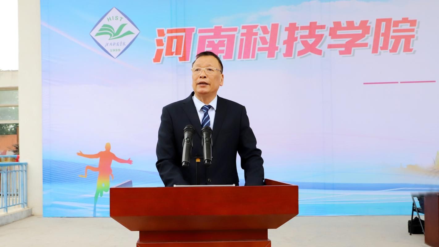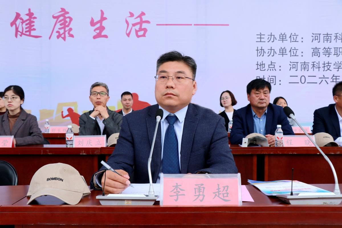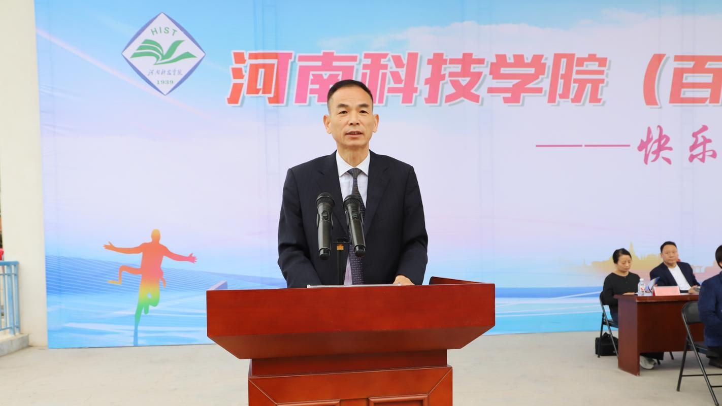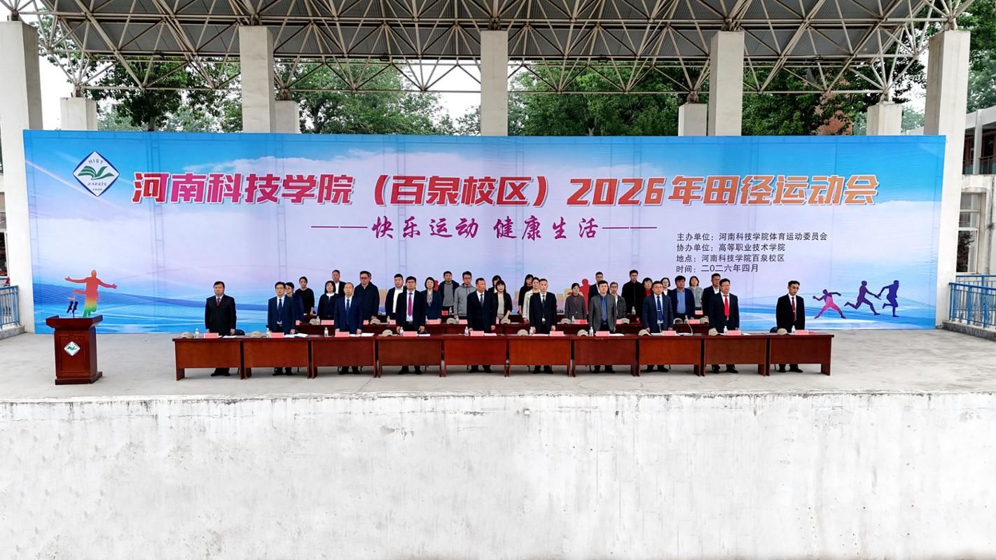 4月16日上午,河南科技学院百泉校区2026年田径运动会隆重开幕。副校长乐玉忠,校长办公室、教务处、学生处相关负责人出席开幕式。高等职业技术学院全体班子成员、科级干部、裁判员、运动员代表及师生代表参加了开幕式。开幕式由高等职业技术学院院长李勇超主持。