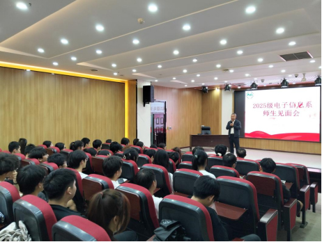 9月16日,电子信息系2025级新生见面会在综合楼四楼报告厅举行。学院副院长王铁固、系主任、党支部副书记、教学主任、全体辅导员及2025级电子信息系全体新生参加了会议。
