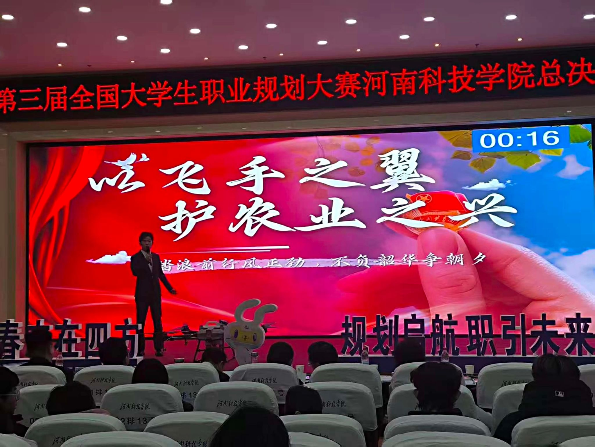 为积极引导大学生树立正确的成长成才观和择业就业观,科学规划职业发展,提升就业竞争力。我系积极组织学生参加,12月25日,由河南科技学院举办第三届全国大学生职业规划大赛,本届大赛以“筑梦青春志在四方,规划启航职引未来”为主题旨在助力学生强化职业规划意识、提升就业竞争力。经过前期筛选与比拼,最终1名优秀学子脱颖而出;经过精彩展示与答辩,2024级无人机应用技术专业的梁立帅获校赛就业赛道特等奖,会师决赛。该生凭借清晰的规划、扎实的功底和充满家国情怀的职业志向,赢得了评委的一致认可。