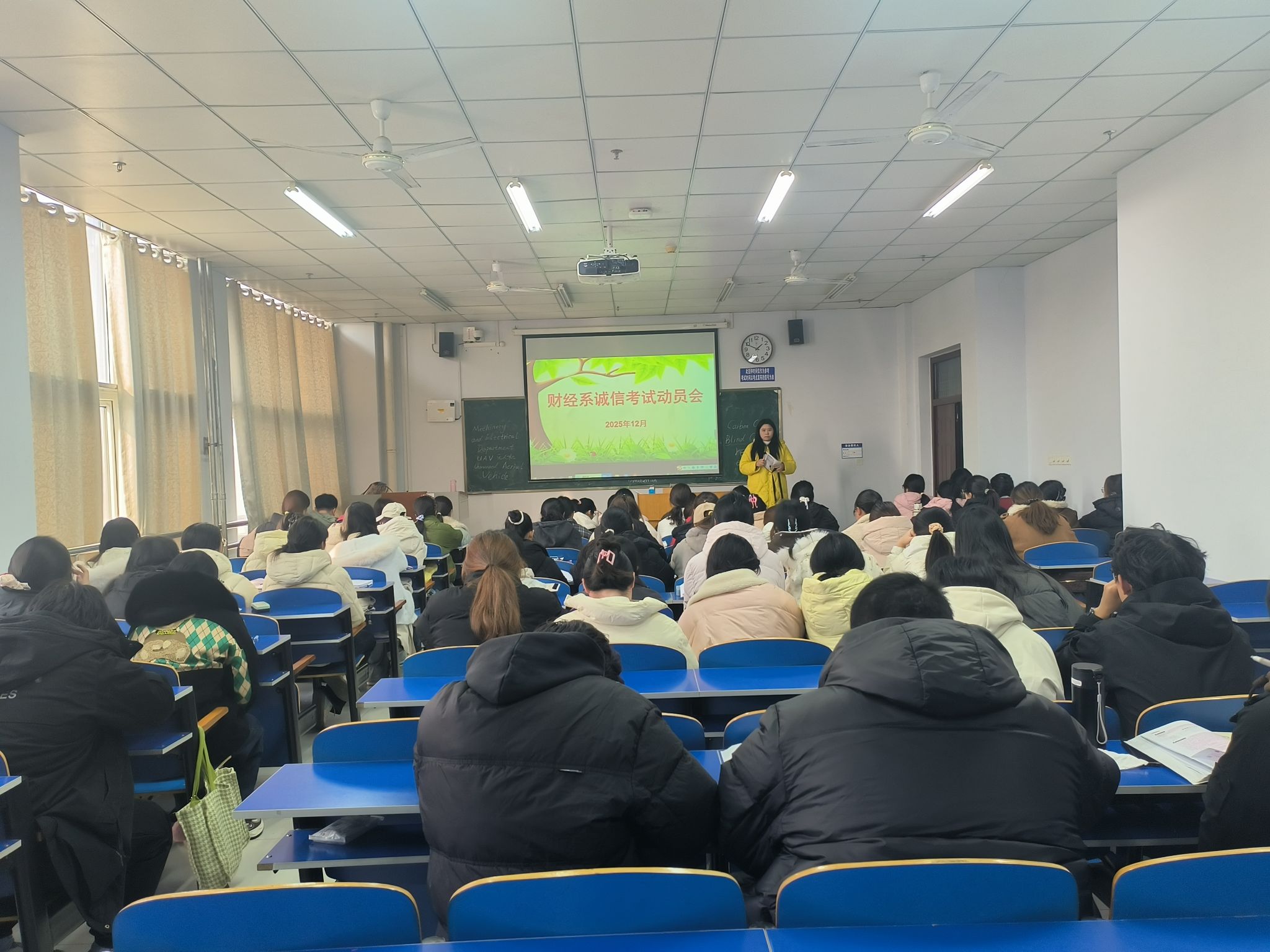 为严肃考风考纪,引导学生树立诚信考试理念,营造公平公正的考试环境,12月29日下午,财经金融系在多媒体教室25、多媒体教室36分别召开2024级、2025级全体学生期末诚信考试动员会。系教学主任、教学秘书等组织了此次会议。